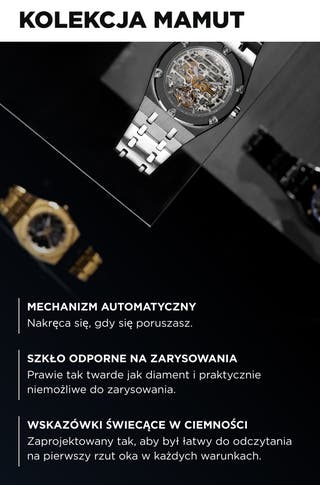 Czarny automatyczny zegarek z widocznym mechanizmem Aaran Mamut