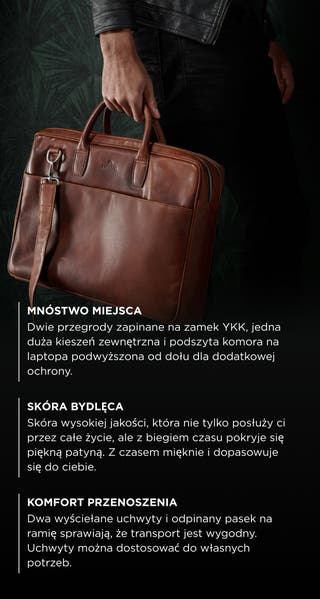 Kasztanowa biznesowa skórzana torba z podwójnym zamkiem Cambodia