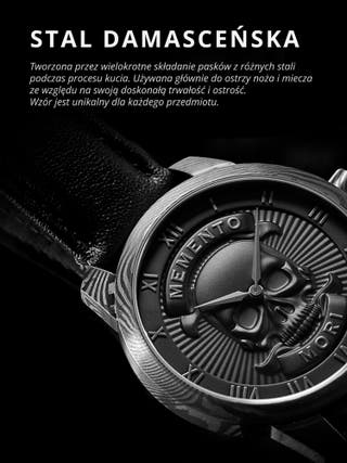 Memento Mori | Zegarek ze stali damasceńskiej z czaszką Memento Mori