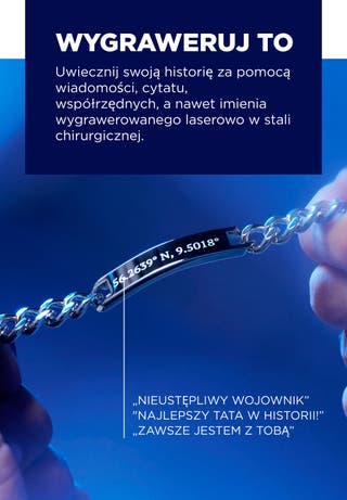 Twój tekst zostanie wygrawerowany laserowo w metalu, tworząc trwałą pamiątkę.
