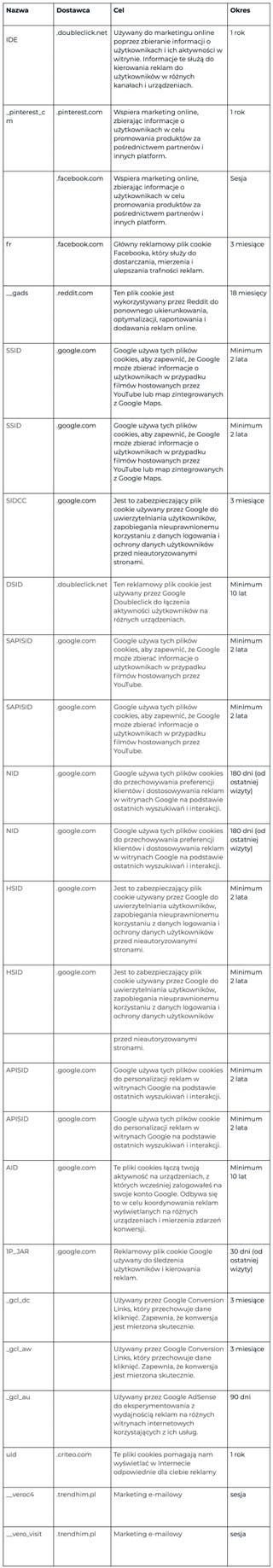 Jeśli masz jakieś pytania dotyczące tej polityki plików cookies, możesz skontaktować się z nami pod adresem info@trendhim.pl